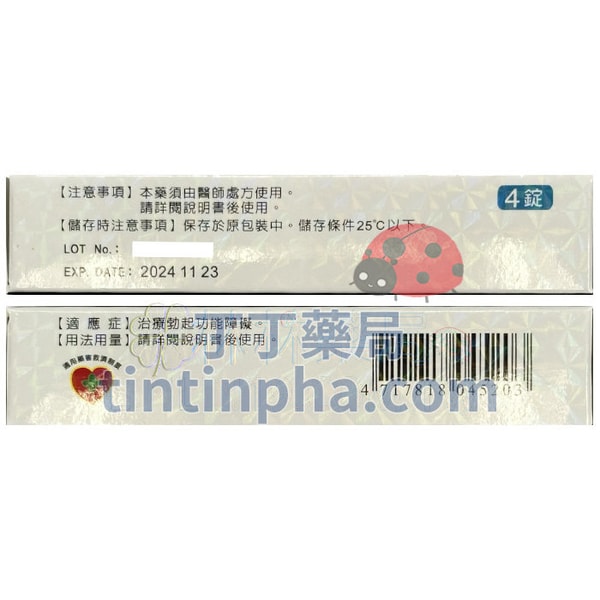 | 商品名 | 勁力士 Supergra | 藥品許可證 | 衛部藥製字第060429號 | ||
