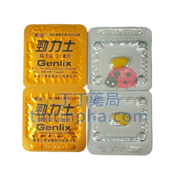 | 英文名 | Genlix F.C. Tablets 20mg Weidar | 規格 | 4錠/盒(Box) | ||