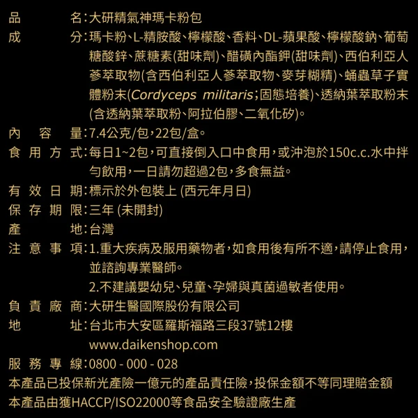 | 【品名】 | 大研生醫 精氣神瑪卡粉包 |