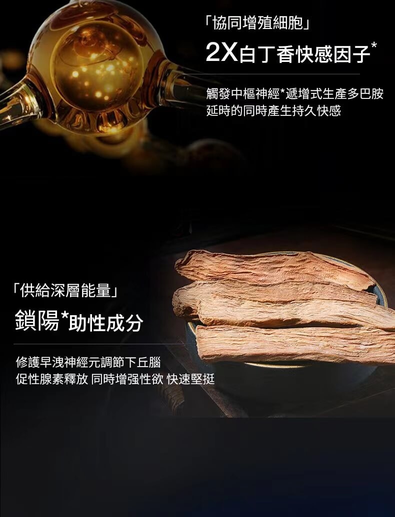 【產品成分】:瑪咖、銀羊藿、肉蓯蓉、羊起石、丁香、純化水、紅景天、東革阿里、卡賓達樹皮等植物提取物、精氨酸。