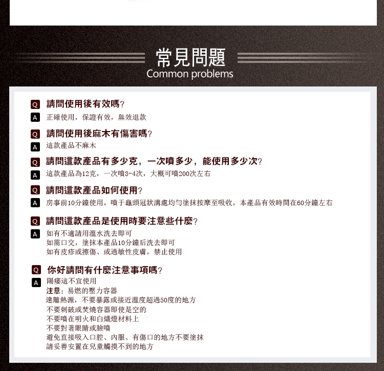 5. 運用簡潔方便,在房事前10-15分鐘噴灑均勻即可。小巧便攜設計,隨時隨地掌控熾熱激情,無拘無束的自在體驗。