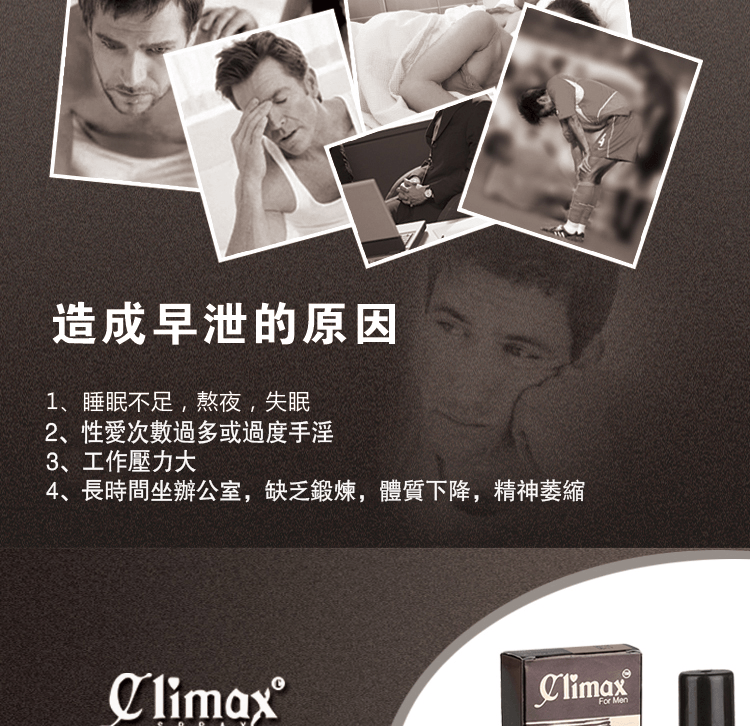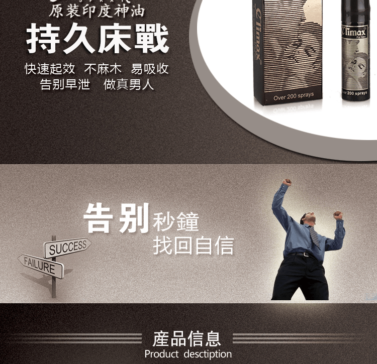1. Climax延時噴霧專為東方勇士量身打造,不僅能大幅提升您的持久力,更能讓您在嚴峻戰況中保持悍勇狀態,徹底滿足愛侶渴望。