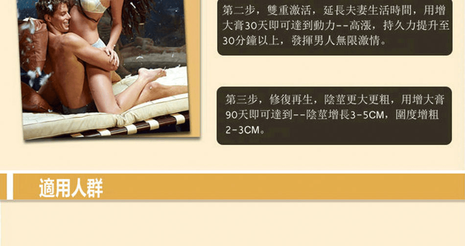 2.做愛時使用加強勃起,延長性愛時間、增強快感,一展雄風。