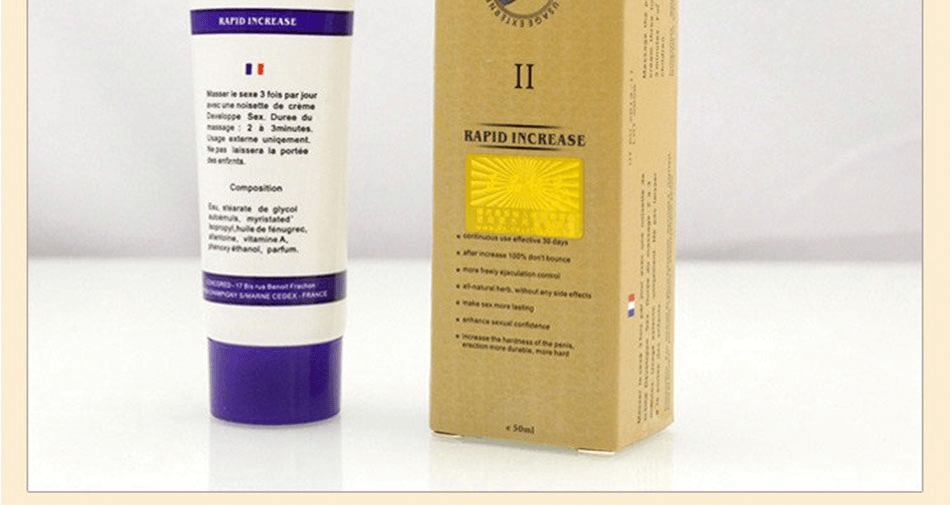 將少量軟膏塗於陰莖表面上,按摩2-3分鐘,每日2次,增大效果非常顯著。使用時請參考盒上原文說明!請馬上購買“法國的確勁”DeveloppeSex,今晚你的另一半會為你的表現而感到自豪。