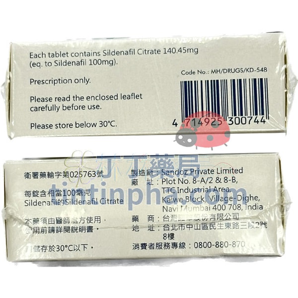 | 學名 | Sildenafil | 生產藥廠 | 台灣諾華股份有限公司 | ||