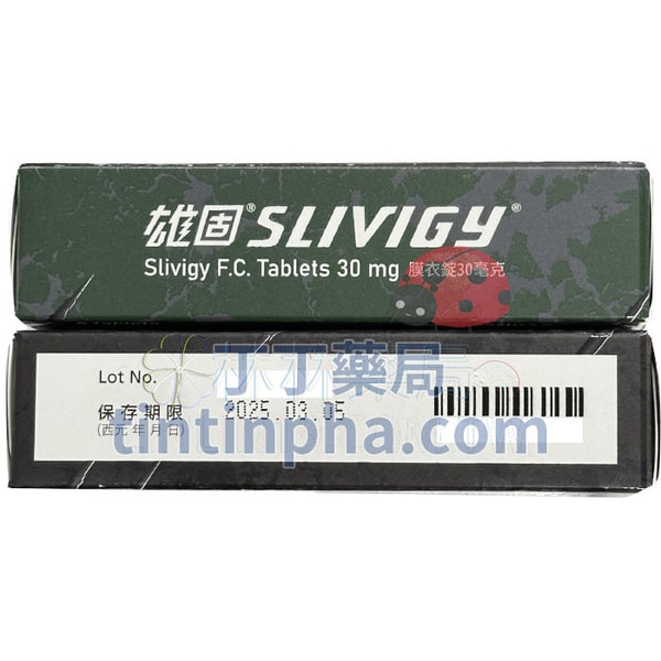 | 英文名 | Slivigy F.C. Tablets 30mg | 規格 | 4顆/盒(Box) | ||
