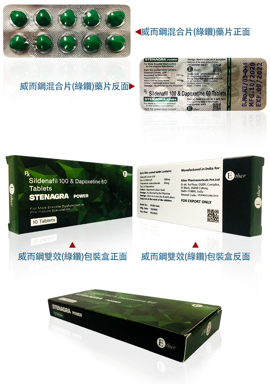 Stenagra Power綠鑽是一款復合藥物,它結合了60毫克達泊西汀和100毫克西地那非這兩種有效成分,能夠同時治療勃起功能障礙和早洩。許多男性同時面臨這兩種問題,這通常需要他們分別服用兩種不同的藥物來解決。