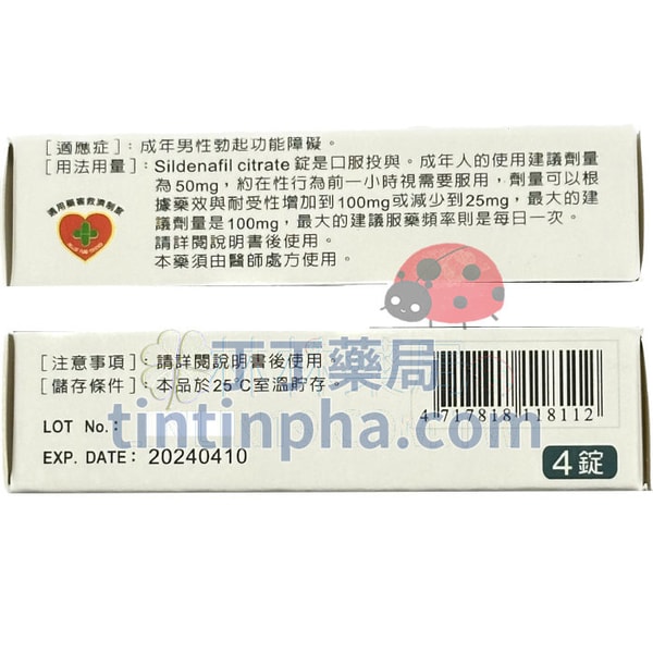 | 學名 | Sildenafil | 生產藥廠 | 衛達化學製藥股份有限公司 | ||