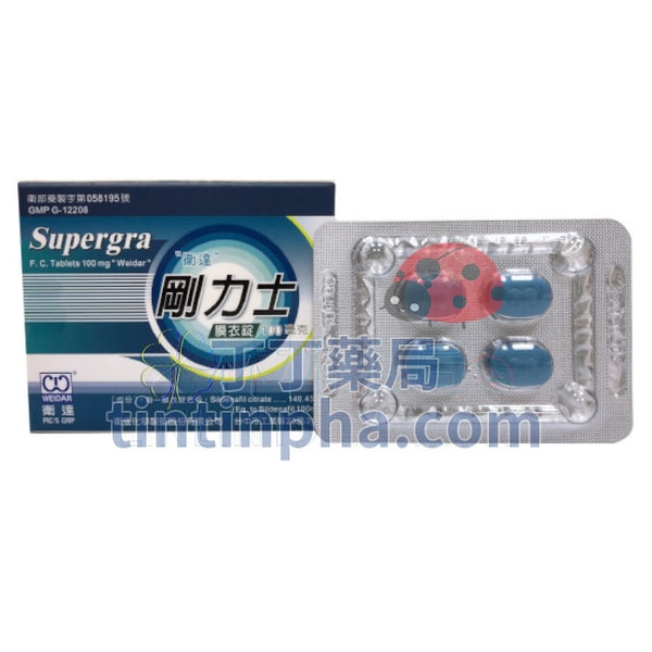 | 英文名 | Supergra F.C. Tablets 100mg “Weidar” | 規格 | 4錠/盒(Box) | ||