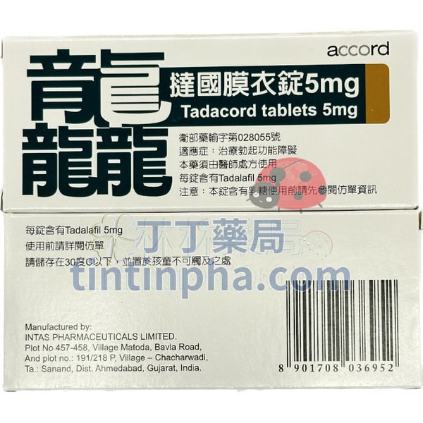 | 英文名 | Tadacord Tablets 5mg | 規格 | 28錠/盒(Box) | ||